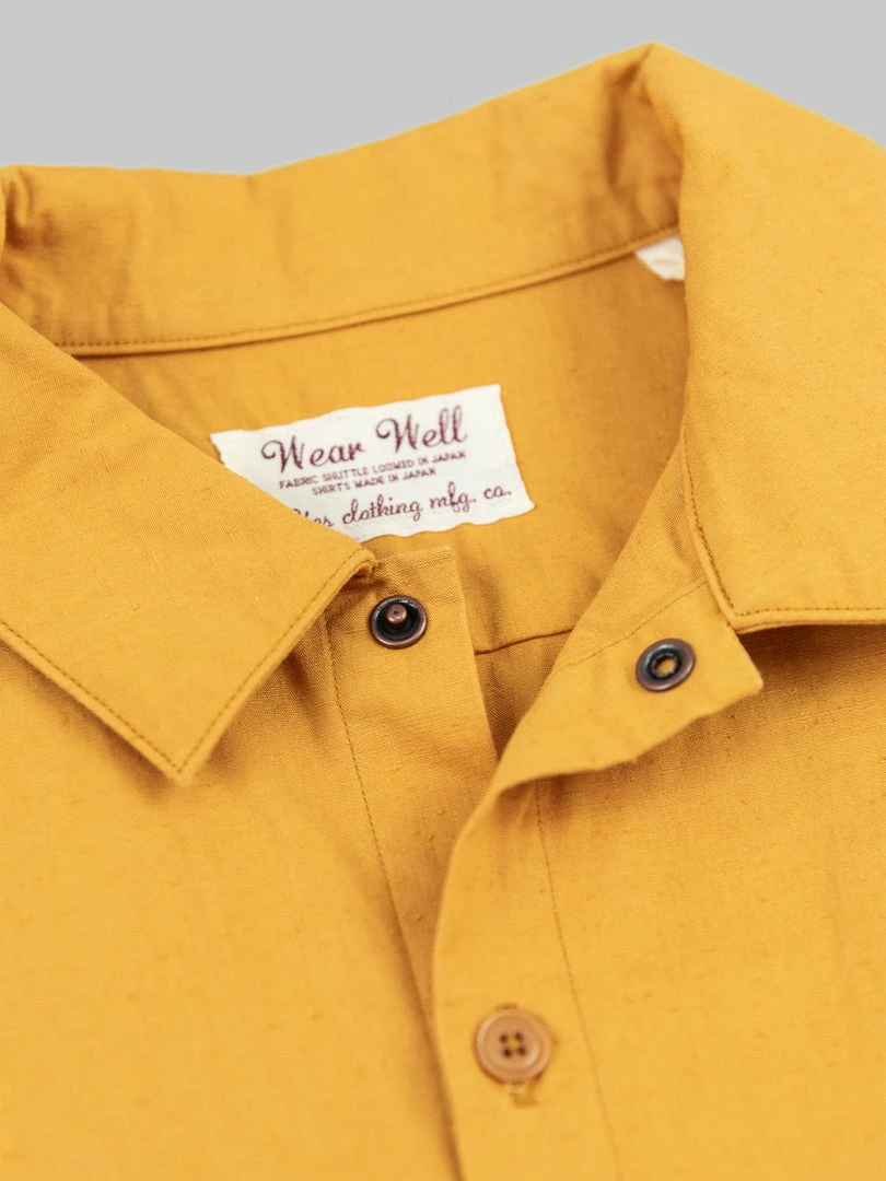 The fabric features a firm texture with uneven threads and tons of neps on the surface. The shirt is full of superior-quality details. It features a snap top button and uses an outstanding, highly skilled sewing process with a single-needle construction. Single-needle refers to the construction of an item as being wholly made with a lockstitch machine -which can include flat-felled seams. The counterpart to a single needle is a factory that uses automated equipment.