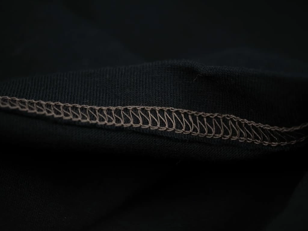 They have a superior quality construction featuring two-needle stitching in the shoulders, hem and cuffs. The reinforced collar rib is knitted with 30 count yarn and sewn into a tape-like material. This makes it very sturdy and much stronger than a standard neck construction.